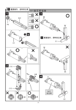 重要操作,請特別注意 H1 液壓筒組裝 1 3 E21 P6 1 重要操作,請特別注意 G1 H1 2 2 C12 卡噠 4 卡噠 C13 H1 液壓筒 G1 21