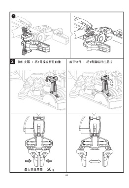 5 2 物件夾取 : 將1號操縱桿往前推 放下物件 : 將1號操縱桿往后拉 最大夾舉重量 : 50 g 80